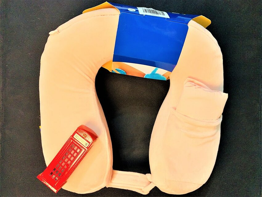 翻過來,頸枕背面有一個小口袋,裡面裝的是頸枕的收納袋。