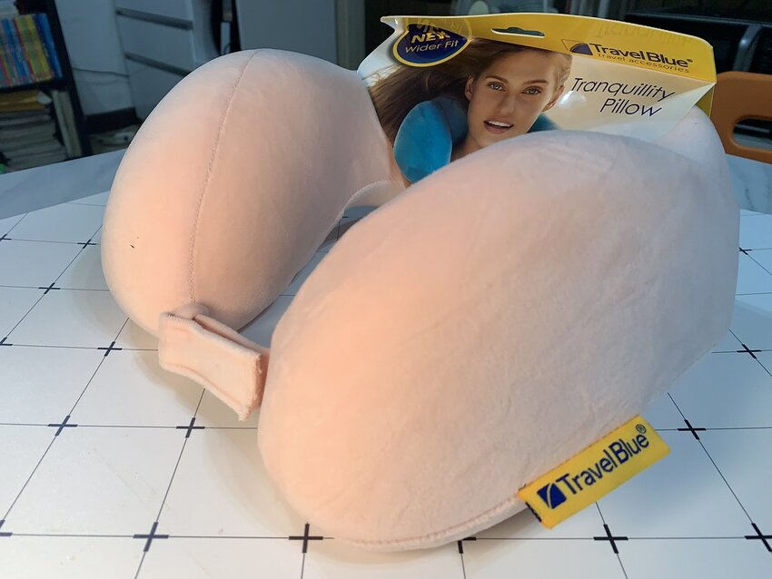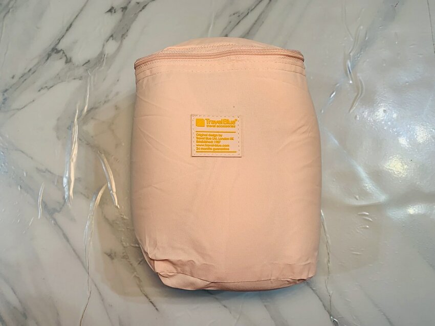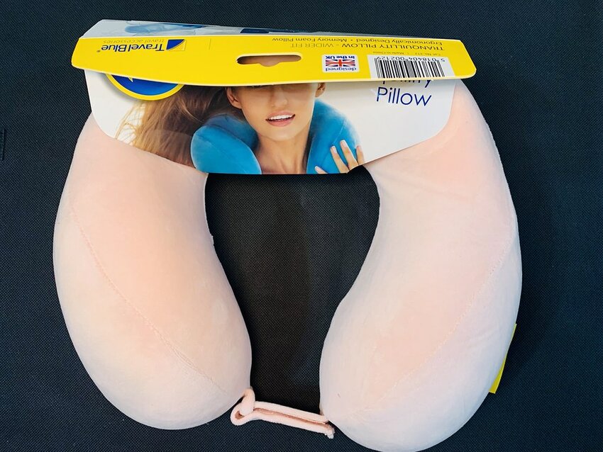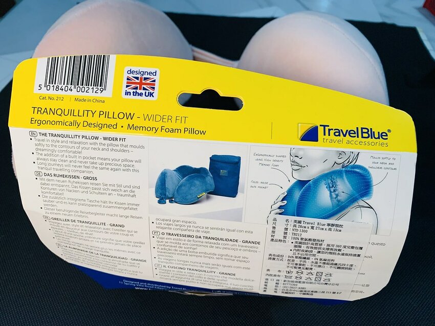 頸枕的側邊有Travel Blue 黃底藍字的標籤。