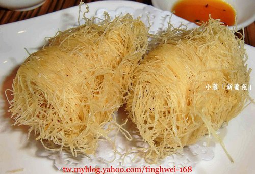 外層炸過的粉絲也是一咬下就飛散灑了滿桌哩....