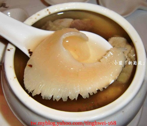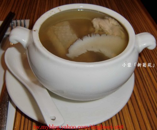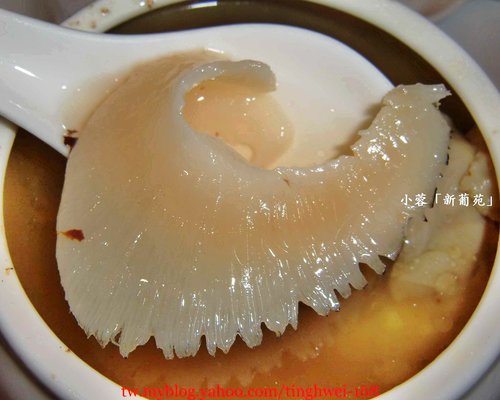 湯內有一小片的魚翅 , 湯頭很鮮美甘甜好喝~