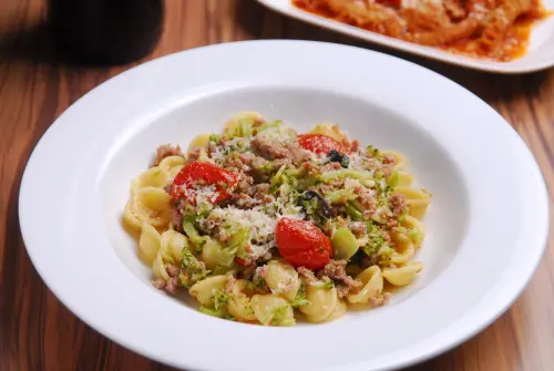 可惜油加得太多了, 麵吃完時還留下很多的橄欖油在盤底....