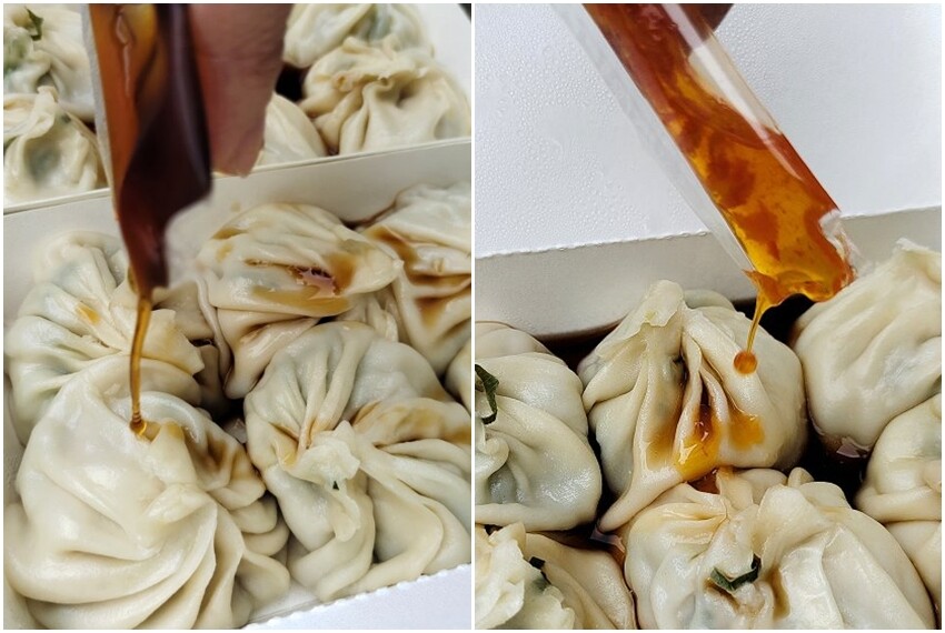 ▼他們家的湯包皮薄餡多又帶有噴汁的口感,單吃清甜又爽口,搭配醬料、青蔥、辣椒更是提味不少,整個香氣滿滿,好吃耶!