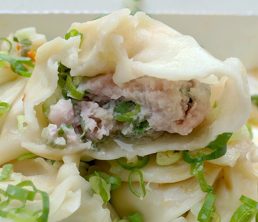 ▼一口咬下,薄Q的外皮搭配飽滿多汁的肉餡,不僅帶有甘甜湯汁,而且肉鮮味美,還多了討喜的蔥香,加上微鹹甘甜的醬料很對味啊~~
