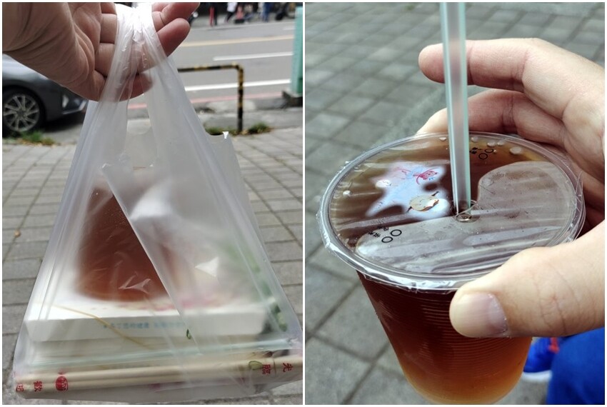▼我們買了兩盒湯包、一杯冬瓜茶,大概等了10分鐘左右,還算可以接受!我們直接拿到對面頭份國小圍牆旁座椅享用,不過吃完記得收拾乾淨,把垃圾隨手帶走喔~~冬瓜茶喝起來清涼甘甜,不過就是小小一杯,一下子就沒了(笑)!