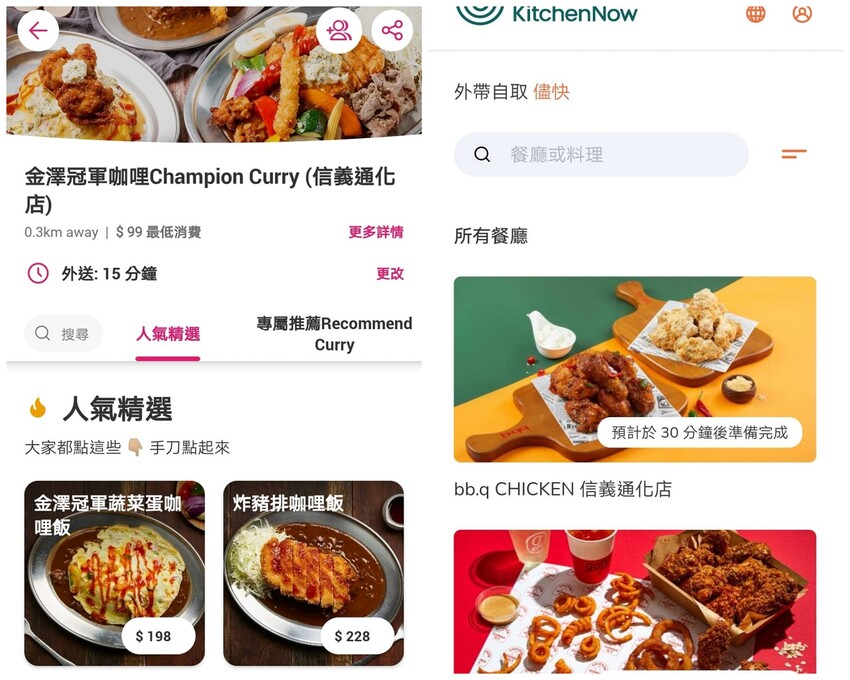 平常就很習慣叫外賣的人,不需要改變使用模式,選一個自己喜歡使用的平台點餐就好。KitchenNow 自家的點餐網站在手機的顯示上會比 Foodpanda 介面更為直覺。