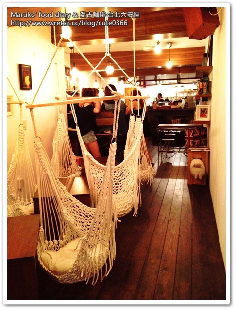 這樣白色的吊椅在台北市的店家其實不太容易見到,慵懶的坐在吊椅上晃來晃去,挺有趣的。