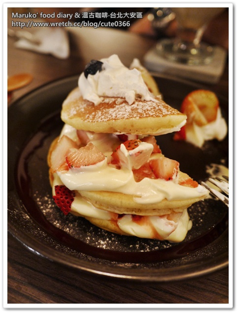 裡頭雖然也是鮮奶油,甜度很適中,吃起來不會覺得甜膩,滿滿的新鮮草莓丁和鬆餅