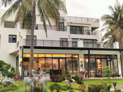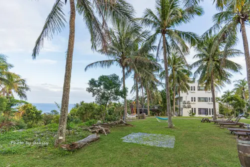 一樓房間開放陽台,二樓以上房間獨立陽台,面花圃或山景;房門打開面海景
