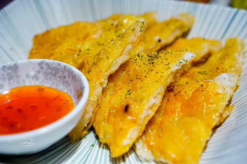酥脆的泰式蝦餅,裡頭的蝦肉份量不手軟,每一口都有鮮蝦。