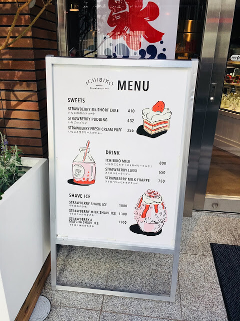 店門擺放著明亮的蛋糕櫃,陳列多款甜點,像是草莓蛋糕、草莓泡芙、草莓布丁等等。每款小巧精緻,但價錢偏貴,小小的一塊蛋糕就要四百多日幣。這次我選擇了草莓蛋糕跟草莓牛奶刨冰跟朋友分享,入座不久蛋糕便馬上被送上來了。