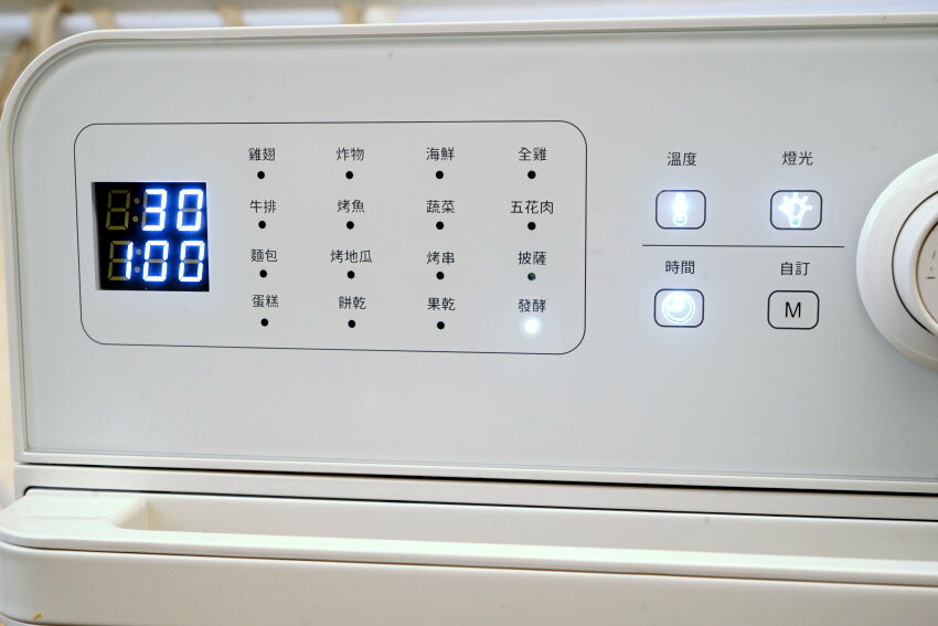▼旋鈕只要左右微調即可選擇模式,另外也可以自訂溫度、時間,最方便的是還有燈光照明,更能清楚掌握食物烘烤狀況!
