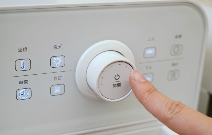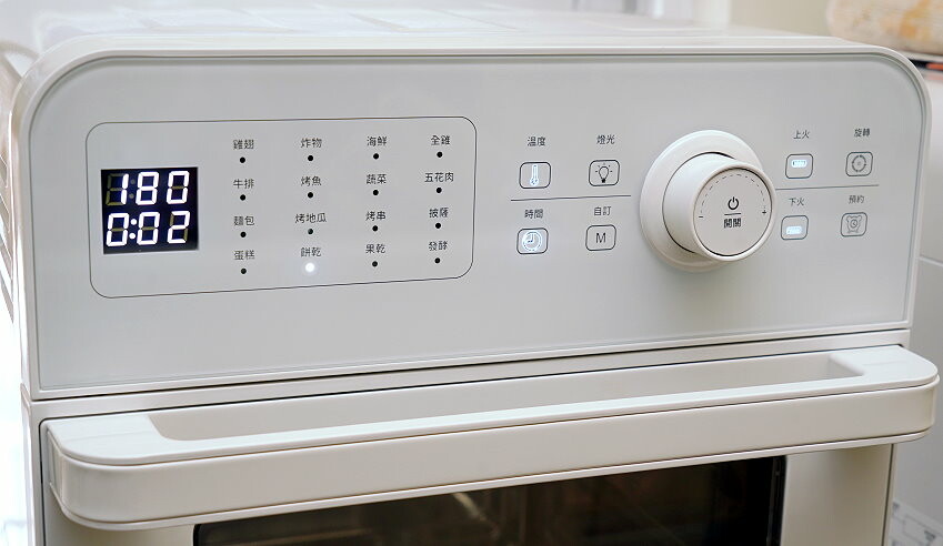 ▼復古式的旋鈕搭配開關按鍵,一按下即可開啟或關閉! (這個旋鈕設計我覺得贏過同等級氣炸烤箱,尤其是開機後要選擇模式超級方便!)