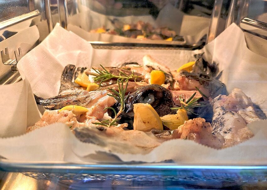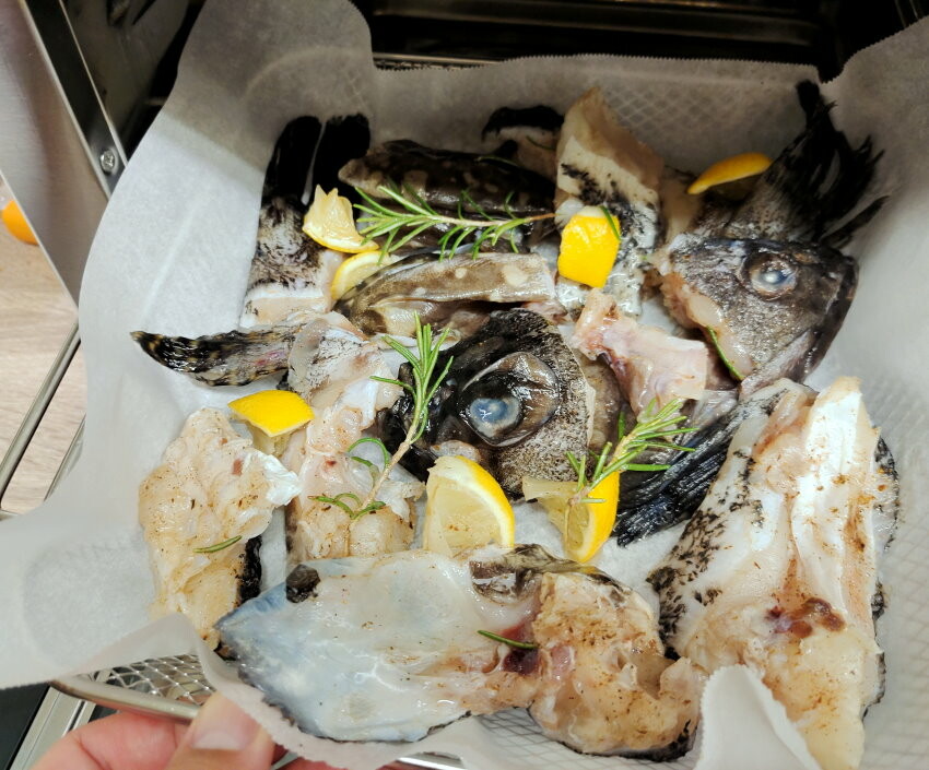 ▼在家也可以當作居酒屋來個烤魚頭、魚下巴,整個很下酒啊!將魚頭、魚下巴解凍後,稍微擦乾再撒上鹽巴、胡椒粉、黃檸檬片、迷迭香等調味料,抓醃均勻後就可以送進氣炸烤箱囉!(未滿十八歲請勿飲酒)
