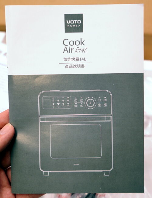 ▼「VOTO Cook Air Rotisserie 14L氣炸烤箱」隨箱還會附上產品說明書、保固卡、配件安裝方式、氣炸烤箱食譜等,使用前可以先看一下!