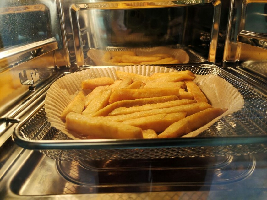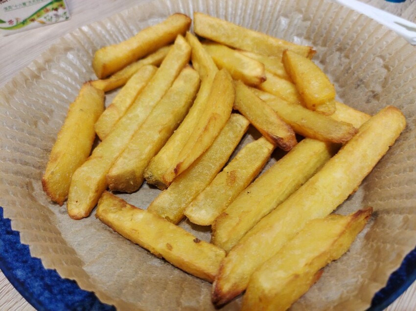 ▼宵夜想來點邪惡的地瓜薯條也沒問題,懶得洗網籃的話再加上一層氣炸專用的吸油紙墊即可(笑)!
