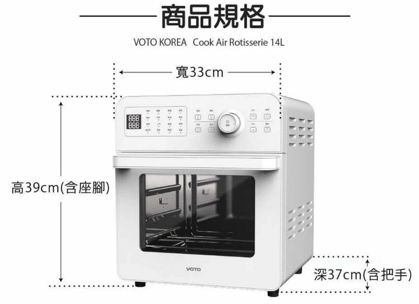 來自韓國第一品牌的「VOTO 14公升氣炸烤箱」相較於氣炸鍋來說,容量更大、使用功能更多元,可說是氣炸鍋的升級版!!「VOTO Cook Air Rotisserie 14L氣炸烤箱」外型簡約又有質感,目前共推出黑、白、粉、紫、綠等五種顏色,不僅有內建16種料理模式,還有14公升大容量、360度旋轉功能、不銹鋼內膽等,從50~220度都能輕鬆設定,不管是鹹食、甜點、發酵都能一機搞定,很適合在家防疫做料理啊!