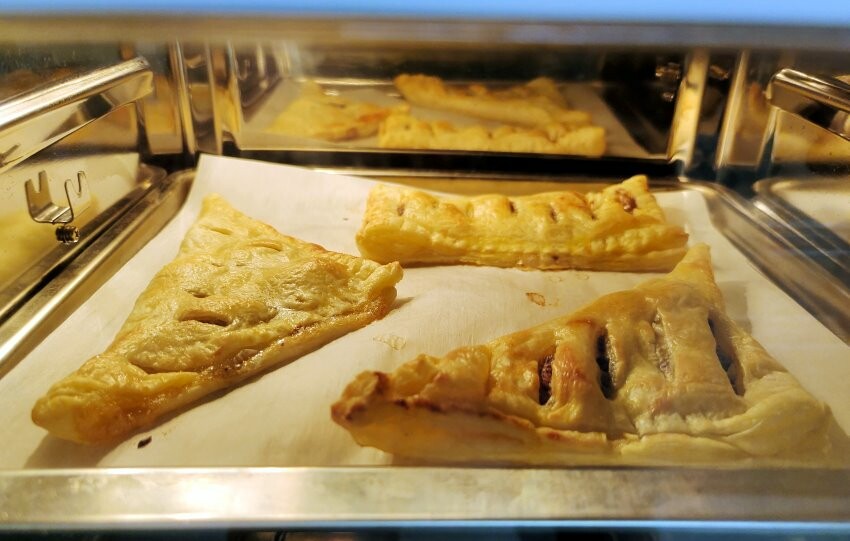 ▼15分鐘後美味的鳳梨派就出爐啦~~吃起來外酥內軟,還吃得到酸甜的鳳梨香氣與鳳梨切片,香甜又美味!