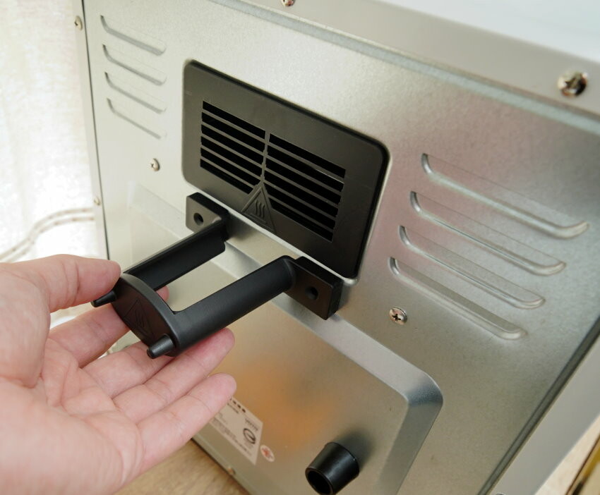 ▼這台還有設置三段式開門,是為了防止氣炸後食物不小心滾落出來,真的很貼心啊! (我必須說,這開門的設計比照片中右邊那台Panasonic蒸氣烘烤爐的門還好用,設計有用心! 使用上也順手!)