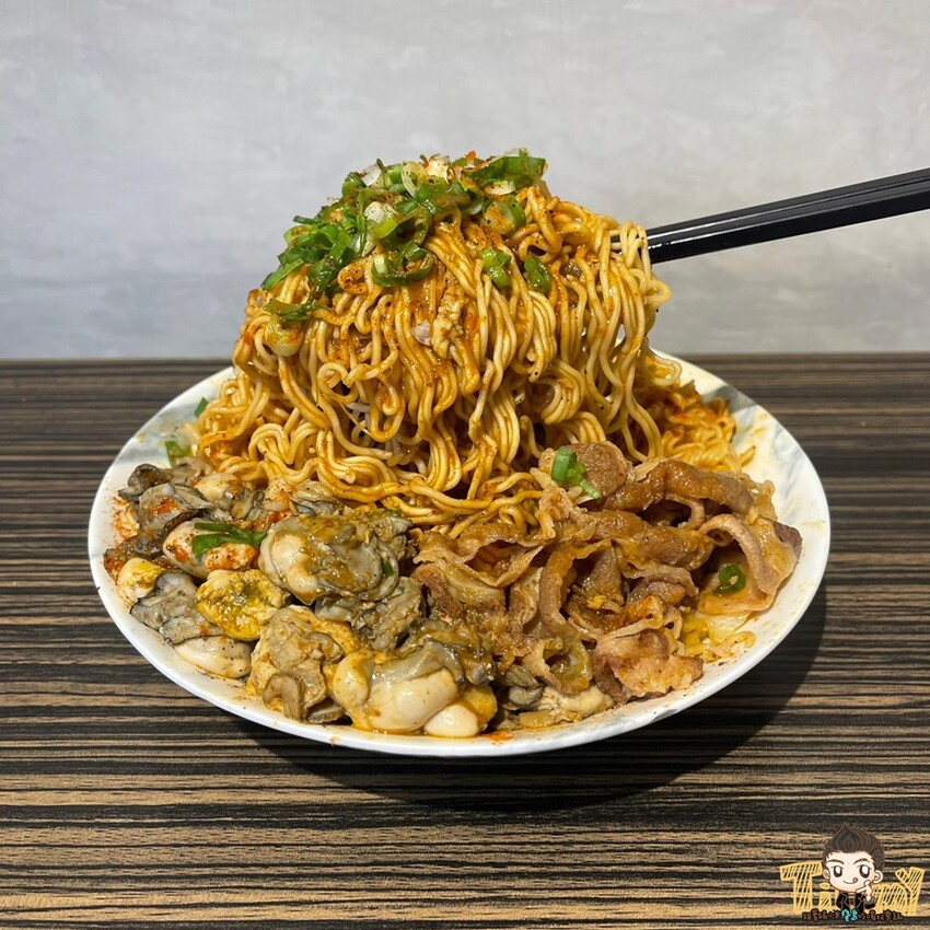 有牛五花及新鮮蚵仔以川味麻辣的方式來呈現,來自香港的公仔麵約兩人份,很適合兩人或多人一起分食!