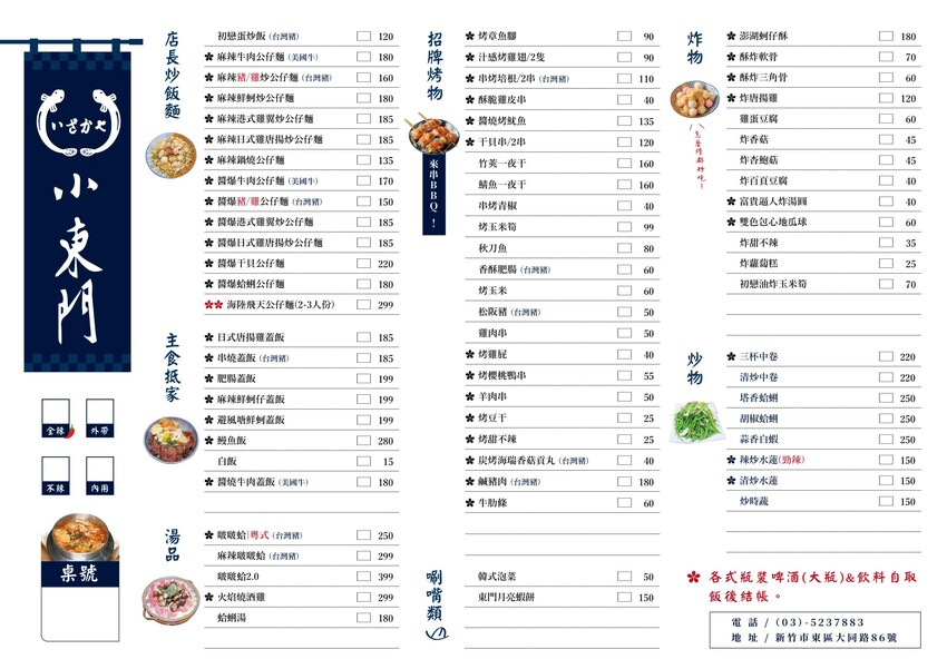 小東門有圓桌及長桌可任意合併,所以人多人少來用餐都不是問題,如果很多人聚餐建議先行電話預訂唷。另外也有提供外帶~