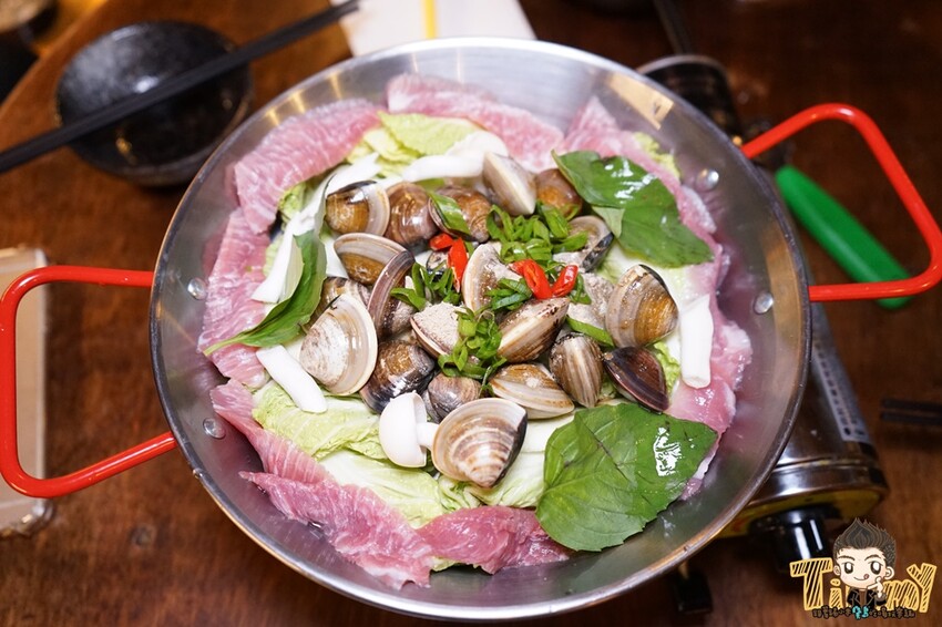 本身白胡椒湯頭就有甜味帶一點點胡椒香就不錯喝了,再加上蛤蜊的鮮味汁汁及菜菜甜味好喝又解酒唷,此外豬肉用的是台灣霜降豬,是有脆度口感~