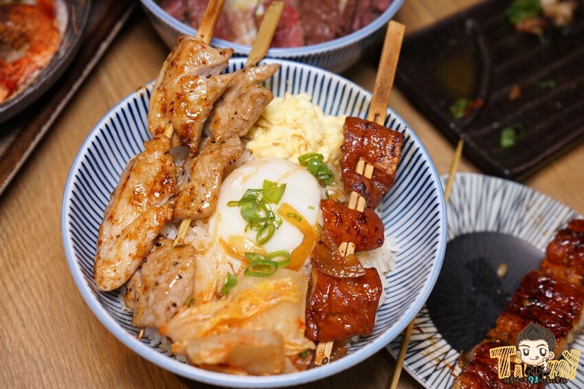 串燒蓋飯185元,有雞肉串.松阪豬.香酥肥腸,再加上蓋飯也是很滿足的一道飯食~