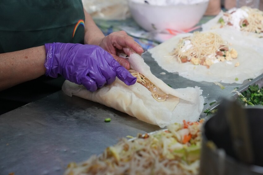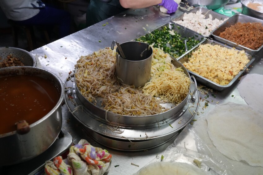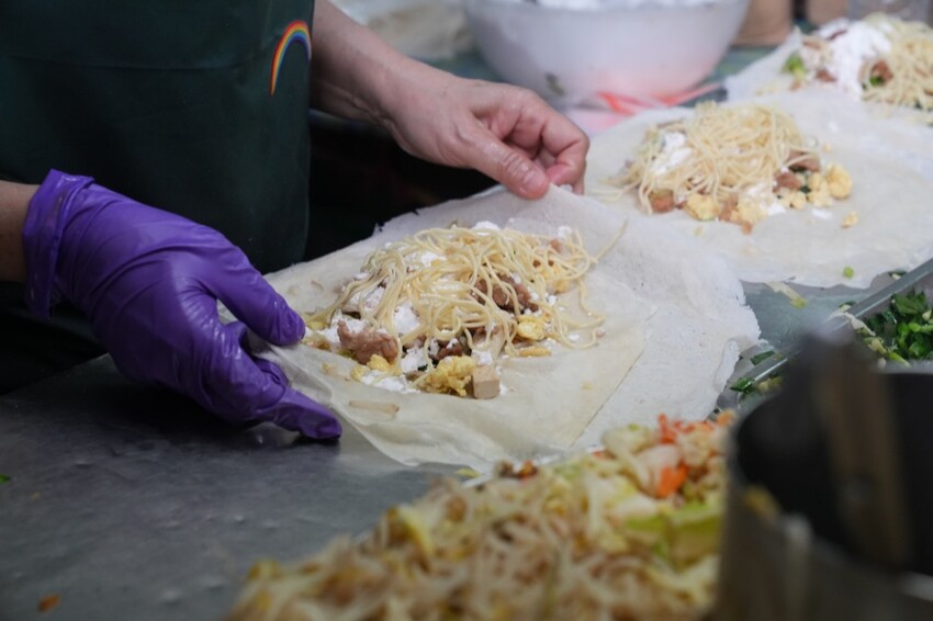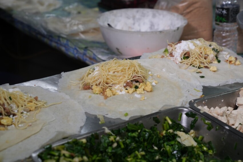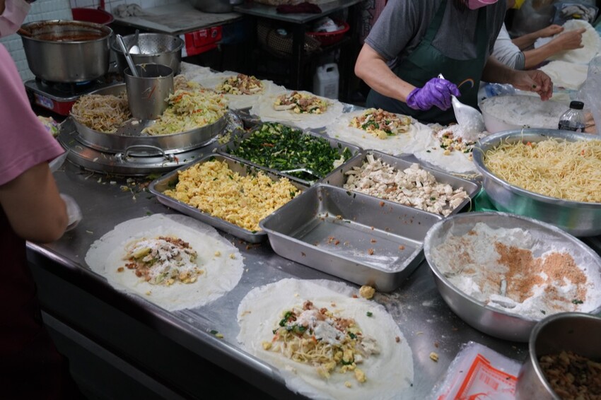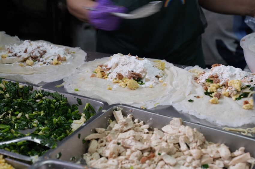 除了滷豬皮以外,還會包入高麗菜、紅蘿蔔、豆芽、魯肥肉、蛋酥等,最浮誇的是還會加入炒麵,一整份吃完超級有飽足感!!