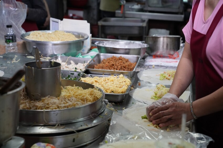 這家蕭家春捲就位於王家牛雜湯的對面,排隊的人潮也完全不輸王家牛雜湯啊,來東市場千萬別錯過!