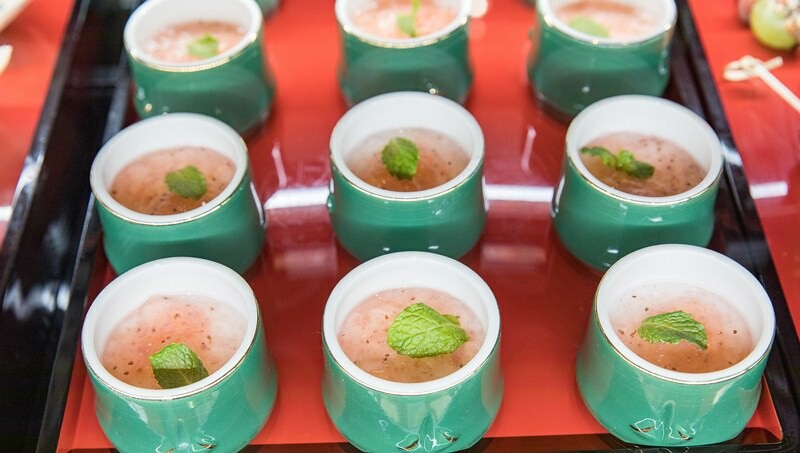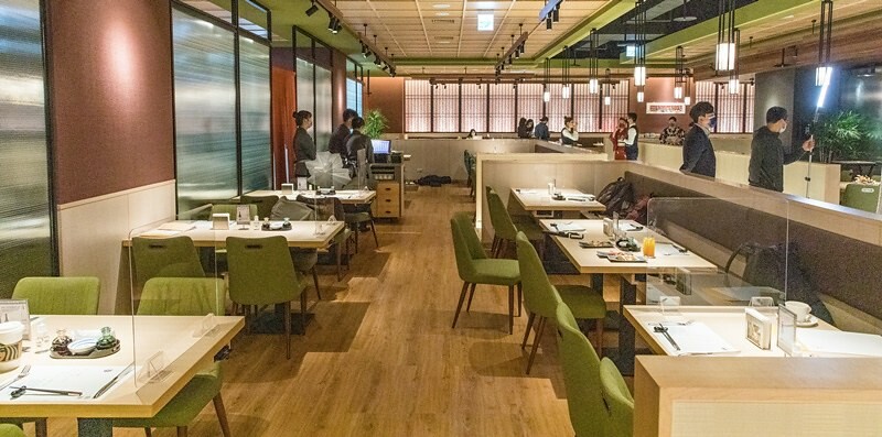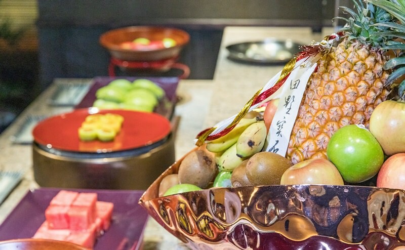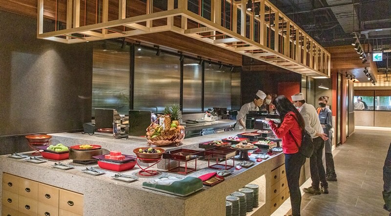 用餐空間要說是純日本風,倒不如說真的很像在日本住溫泉旅館吃buffet的餐廳,上到木窗、土牆、和紙,下至一些小細節以日本「數寄屋」為設計概念,共約有200個左右的座位。當中最重要的便是欣葉集團特別引進的「內將文化」,餐廳的內將有知名日式溫泉旅館(加賀屋)的女將經驗的服務人員。