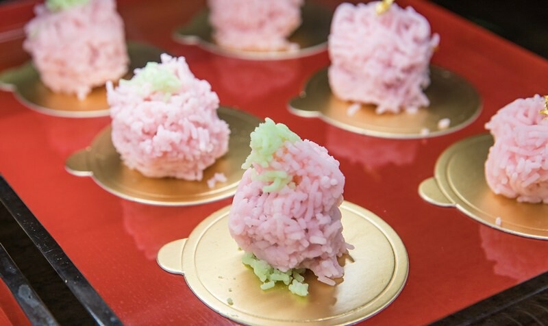 除了現點現切現握的握壽司外,現場還有一些當天現作並隨時補充,小巧精美可愛美味兼具的花壽司和軍艦捲。其中可愛的蝦子球壽司、台灣相對比較少見的押壽司、以最中做成的壽司、用黃瓜片替代海苔的鮪魚泥軍艦捲、比一般花壽司大且用料豐富的鐵炮壽司選項頗多,順便說一下的是這裡的醋飯用的是口感甜度都不錯的越光米