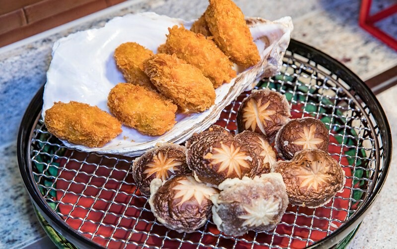炸物方面向來便是欣葉的專長,NAGOMI和食饗宴的選項更多,如椎耳菊揚、櫻花蝦磯邊揚、裹上杏仁片麵衣的海老真丈揚、台灣人最愛的炸蝦天婦羅、來自廣島的炸牡蠣、穴子魚天婦羅看起來都頗有水準,另外光是炸雞就有三四種不同的口味和炸法,其中整個扇貝、牛肉串還有幾份大阪串炸的風格。