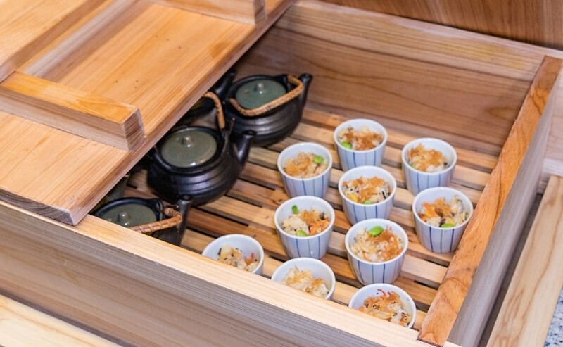 蒸籠區也有五六道料理,炊飯、茶碗蒸、土瓶蒸、和會席料理常見的小缽蒸物都有一兩種不同食材的選擇。