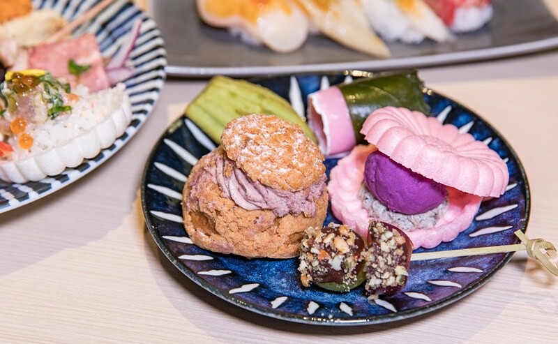 至於日風的泡芙、布朗尼、蒙布朗、蛋糕捲、布丁等洋菓子,單試了一個紫芋泡芙蠻好吃的,抹茶櫻花米布丁看起來也好好吃,可惜我一回頭居然被拿光了......。