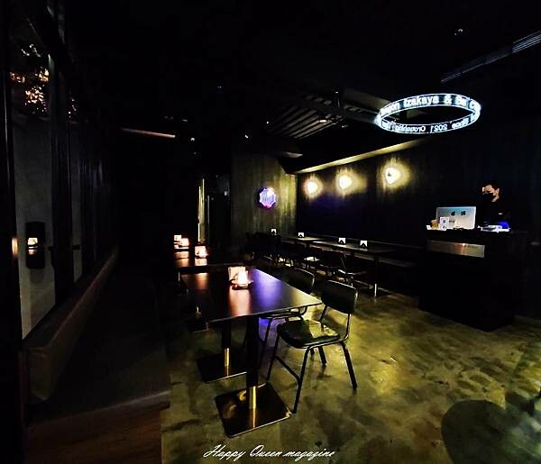 座位不算多,在閃光燈下,才看清楚深色桌椅的樣式及顏色,桌距較近,適合聚餐後的續攤,把酒言歡