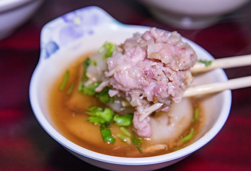 看見我拿著相機猛拍,店裡的大姐很懂的問我要不要拍鍋裡正蒸好的肉圓。是的,這裡的黑肉圓是用蒸的,看起來白拋拋。