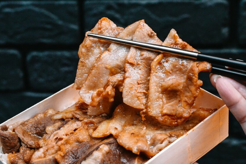 豬五花吃起來非常Q彈肥香,牛五花吃起來很滑順香甜可口,畢竟是別人烤好的吃起來爽度更好,建議30分鐘內食用完畢,稍微冷了微波加熱吃起來依舊美味。