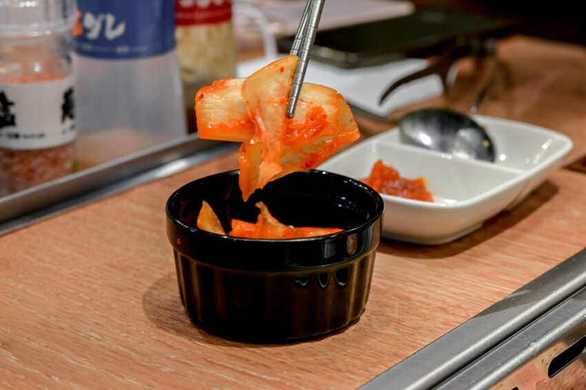 鹽蔥醬、泡菜都可以額外加購,我真心推薦要加購松江南京店限定日式燒肉經典「鹽蔥醬」,可以30元加購,畢竟肉品吃多了會膩口些,可以轉換口味。