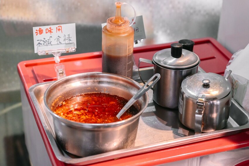 光是辣椒醬就有兩種,一種是香香辣辣的辣油,另一種是店家自製炒過的辣椒醬,底下還準備筷子、小碟子。