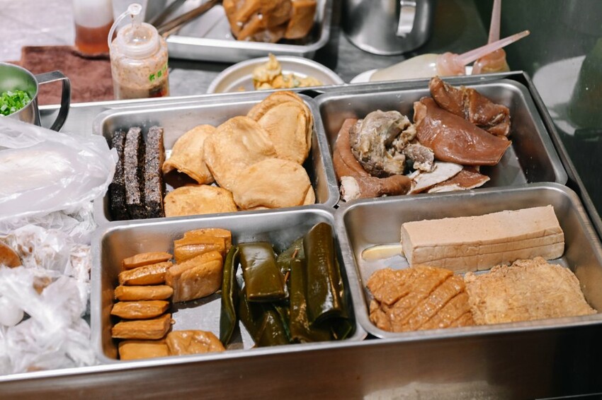 小菜我點了「滷鳥蛋、杏鮑菇、米血糕、蘭花干、九層塔花枝丸、豬耳朵、肝連肉」,滷汁超香不會死鹹但每個又超入味,總之是道功夫菜,每個小菜都超好吃的啦!