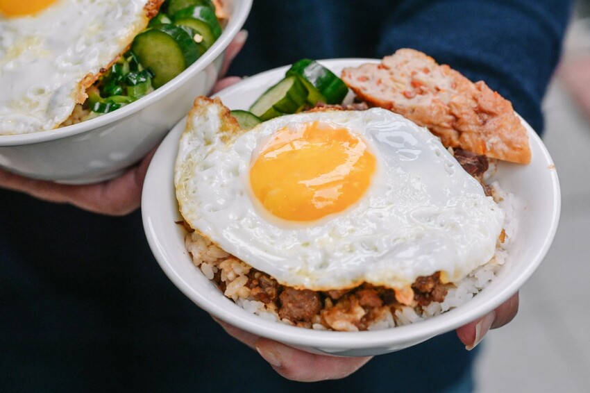 就跟你說一定要加半熟荷包蛋吧,整個美味度UPUP,金黃蛋液順勢流下,均勻攪伴使得肉燥飯更加溫潤柔和,強烈建議必點阿!