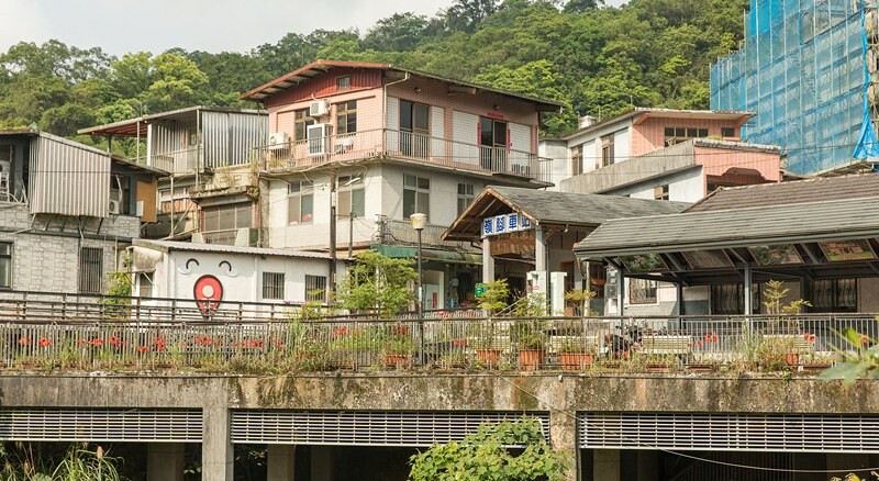 過了橋便是嶺腳社區,往下的微坡是通往平溪的河邊步行道。