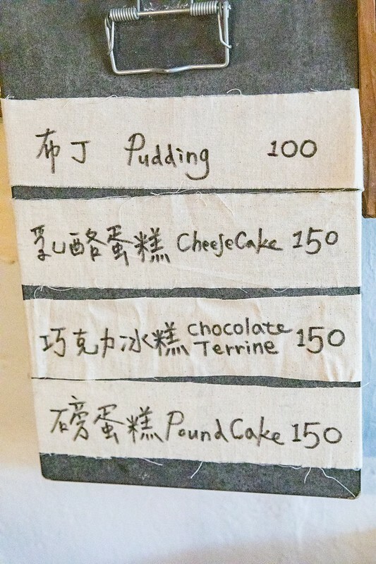 甜點每天都有隨機的三四種,用布條寫的meun蠻有質點的,喜歡。