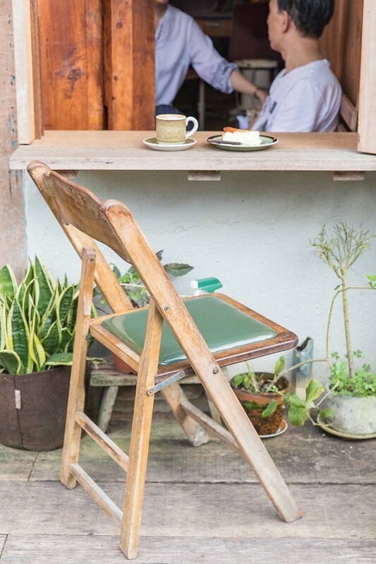 從這扇木窗往裡看,除了咖啡香外,發現這個角度、這張木椅活像站在木造老車站外往裡看的風情,頓時有一種撿到鐵道旅遊氛圍的隨遇而安,在我輕輕按了一下快門,啜了一口咖啡時,那樣的想法油然而生。