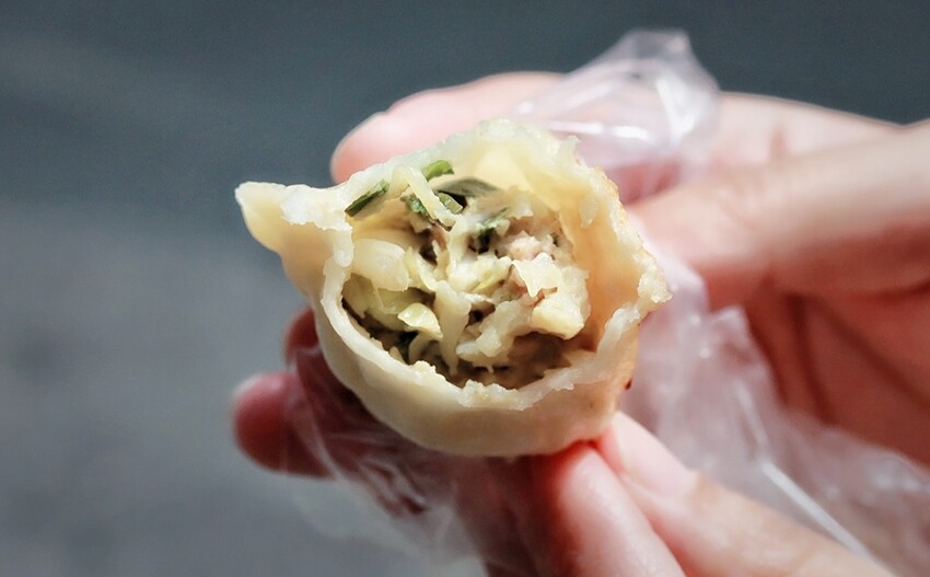 竹山煎餃一顆8元,煎餃的外皮煎得十分酥脆有口感,煎餃的內餡有豬肉、高麗菜、韭菜等,肉菜比例抓得恰到好處,沒有加任何辣醬就很有味道,難怪每一鍋的煎餃一出爐很快就會被買光光。