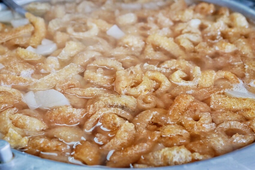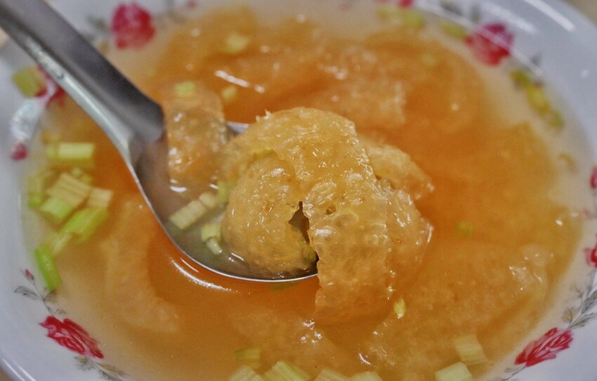 鄰近市場的50年老店爆皮湯,招牌雖說是爆皮湯,但它還有不少餐點可以選擇,像是肉絲炒麵、豬腦蛋、煎豬腦、炒三鮮、炒青菜、黑白切、湯類等,但我們這天真的是吃不下這麼多東西就單純點了一碗小份的爆皮湯,重點是這麼大碗才30元。