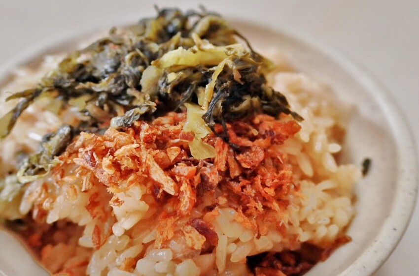 這天我們點了一份米糕(30元)、一份乾麵(30元)、一碗豆腐湯(20元),米糕的特色就是飯是粒粒分明很Q很香拌著酸菜、油蔥酥等堆疊出不同甜鹹甜鹹層次的香味,外帶回家冷了吃也很吃;乾麵的味道也很不錯,雖然不是淋上肉燥但灑滿了油蔥酥以及類似豆干的配料,這乾麵加辣吃真的很推薦;豆腐湯是嫩豆腐,一碗20元,真的是便宜又好喝。