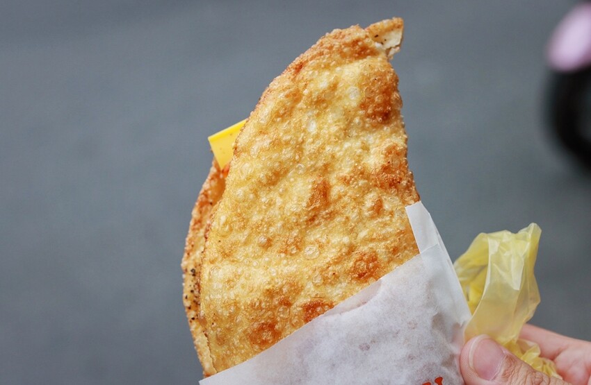 這天我們點了一份綜合小米蛋餅(內有起司跟玉米、蛋)價格是50元,可加辣或不加辣,口感有點像炸彈蔥油餅,但又沒有像炸彈蔥油餅這樣的油膩,餅皮是蠻酥脆好吃,內餡的話這天是點綜合,所以味道很不錯!