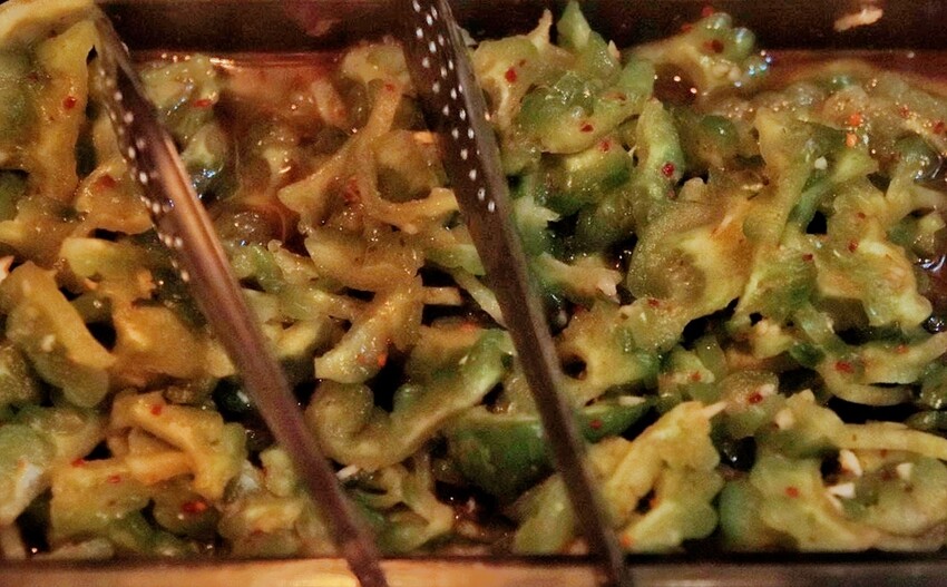 高麗園銅板烤肉-大江店,提供的餐點選擇算很多樣豐富,口味道不道地就見仁見智,但肉類品項過於的醃製處理,吃沒多少就會瘋狂地覺得口渴,且餐後一整個口乾舌燥真的讓人很不舒適!帶著挑嘴的蔬果姐妹來用餐,韓式料理絕大部分過於重鹹(辣)都不太吃,單純吃著高湯所煮的金針菇等配料,就瘋狂吵口渴,一連喝了4杯飲品!