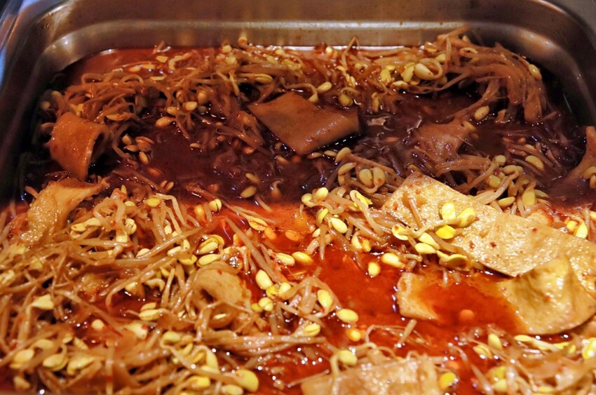 每張桌上都已擺有餐具、濕紙巾、銅盤以及高湯,另外因應疫情的關係,取餐時都需要配戴手套(店家會提供)以及口罩喔!