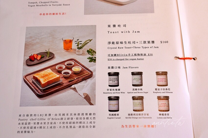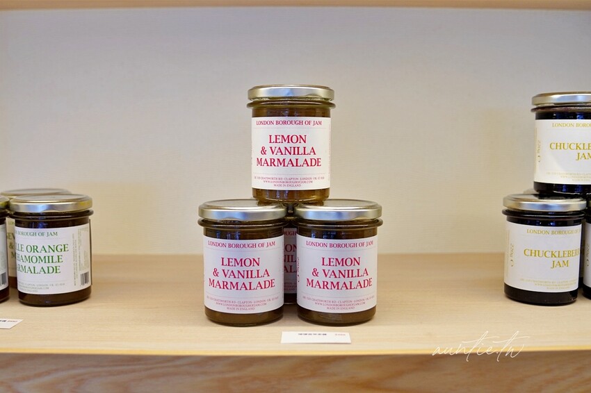 可以選三種果醬,果醬的品牌是來自英國倫敦LBJ,是米其林推薦餐廳,食材使用天然水果,成分不超過四種,味道很天然,吐司的口感冷掉也是很Q彈,個人覺得偏乾了些,但是還好果醬很好吃。
